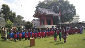 インド中が、「パンドラ・アガストジェイ!(8月15日万歳!)」「マハトマ・ガンディー・キジェイ(マハトマガンジー万歳!)」とわきあがります。菩提樹学園では、本堂の前の広場にインド国旗を掲揚し、全児童が整列し式典が行われました。