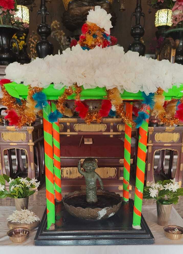 菩提樹学園でも年中行事のひとつとして、日本寺本堂で園児がひとりずつお誕生仏に合掌の後、甘茶を注ぎ、ブッダジャヤンティのお祝いをします。
