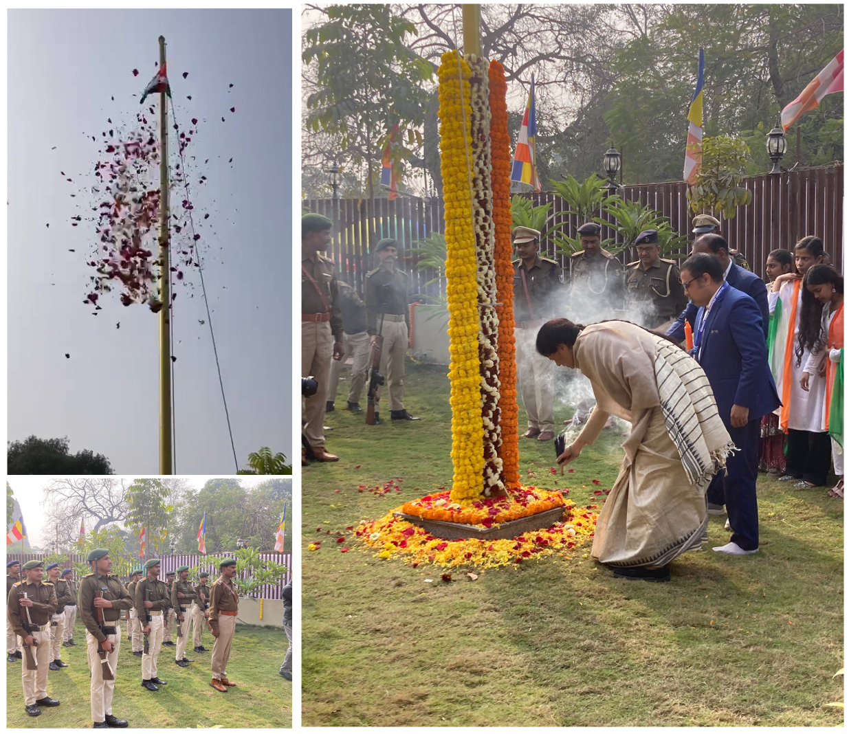 世界遺産大菩提寺を管理運営する大塔管理委員会(BTMC)では、BTMCのメンバーや周辺寺院の僧侶らが参列のもと式典が行われ、BTMCのセクレタリーMahashweta Maharathi氏による国旗掲揚が行われました。日本寺からはジェネラルマネージャーと駐在僧が参列しました。