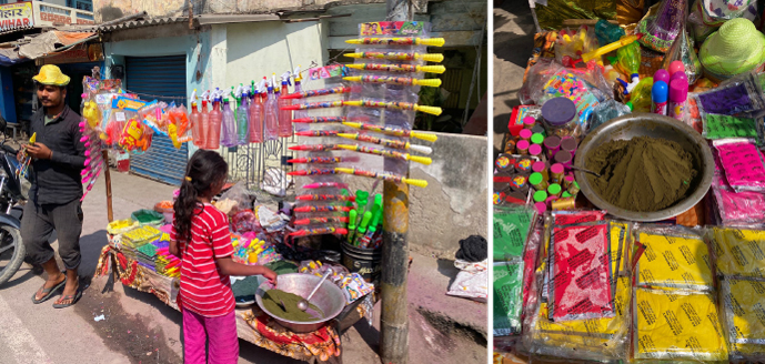 Happy Holi2026年3月5日春の訪れをお祝いするホーリー。ホーリーが近づくと、色粉や色水を入れる容器などが店先に並びます。ホーリーの日は町中が大騒ぎになります。日本寺でも駐在僧とスタッフでホーリーをお祝いしました。