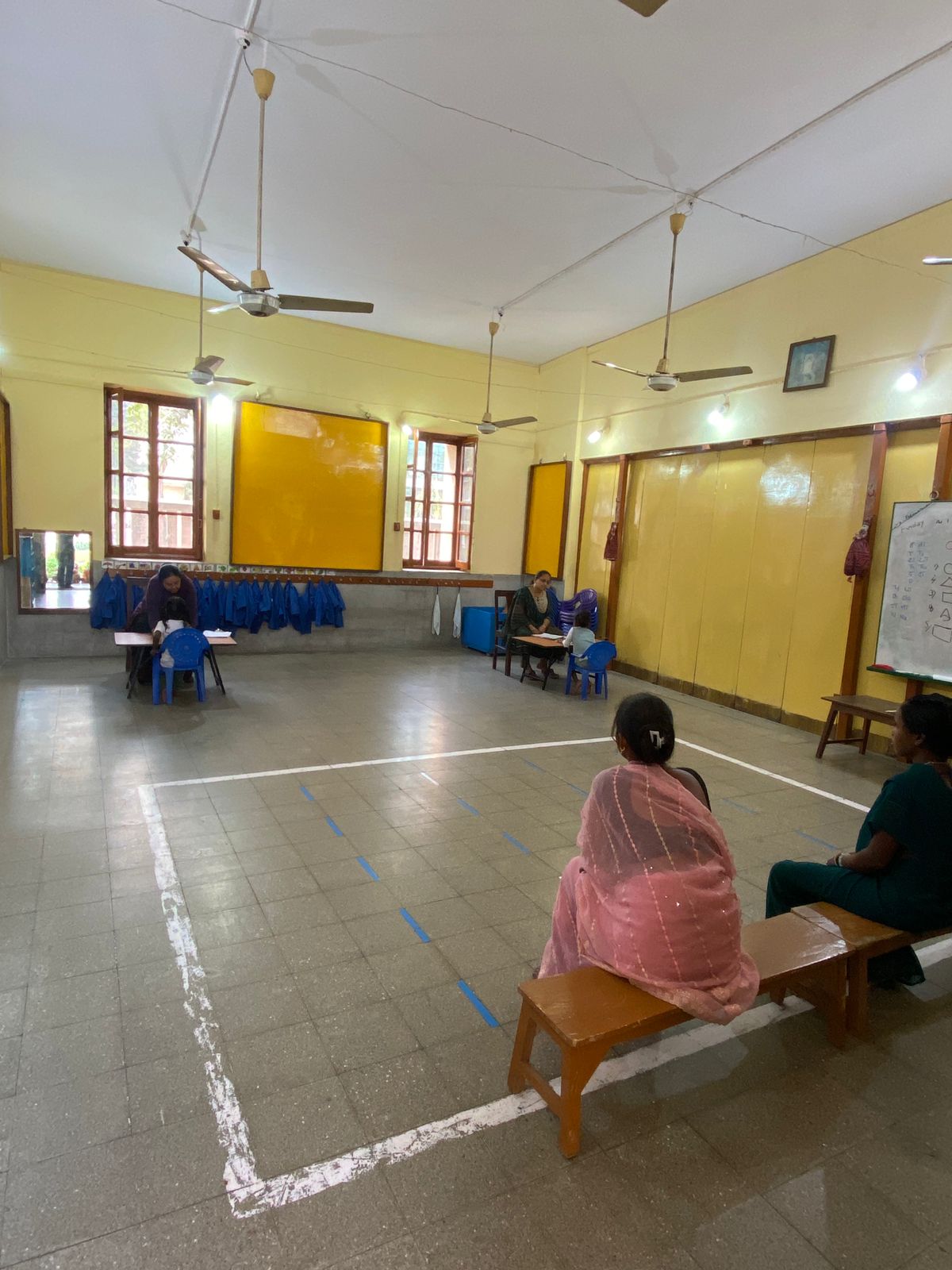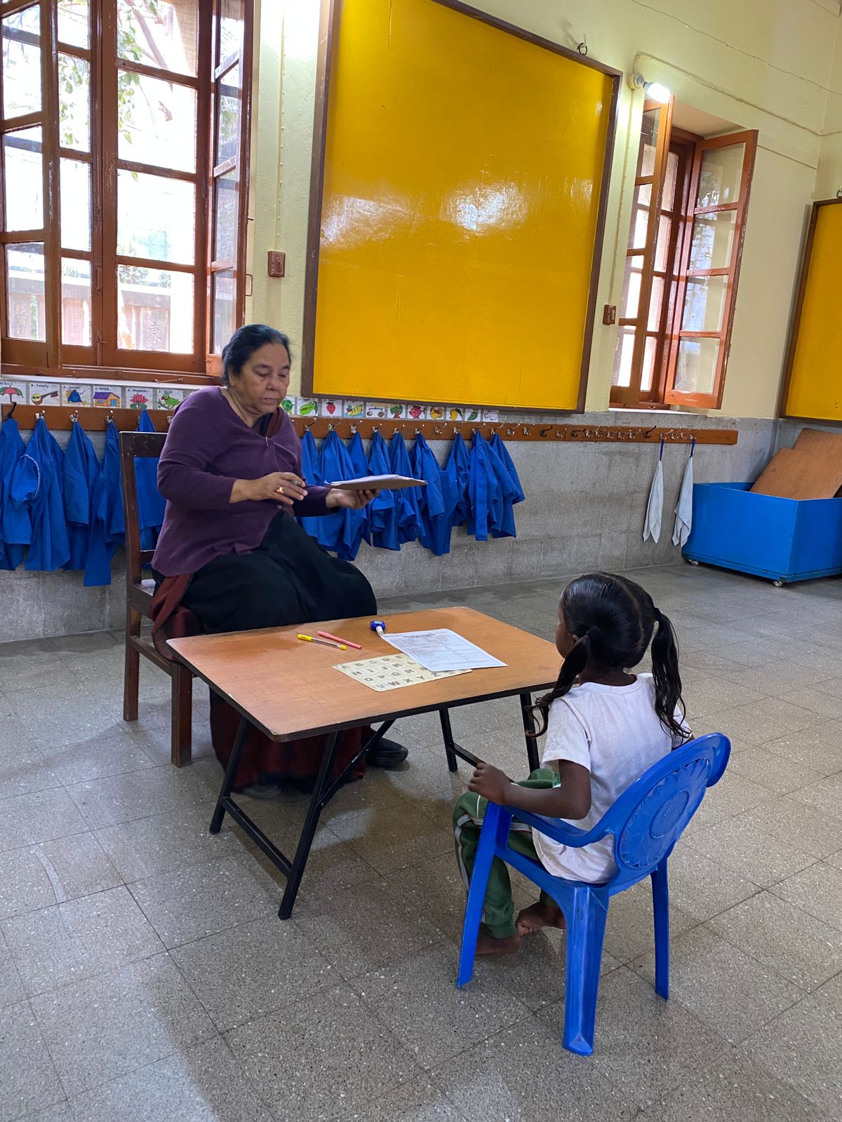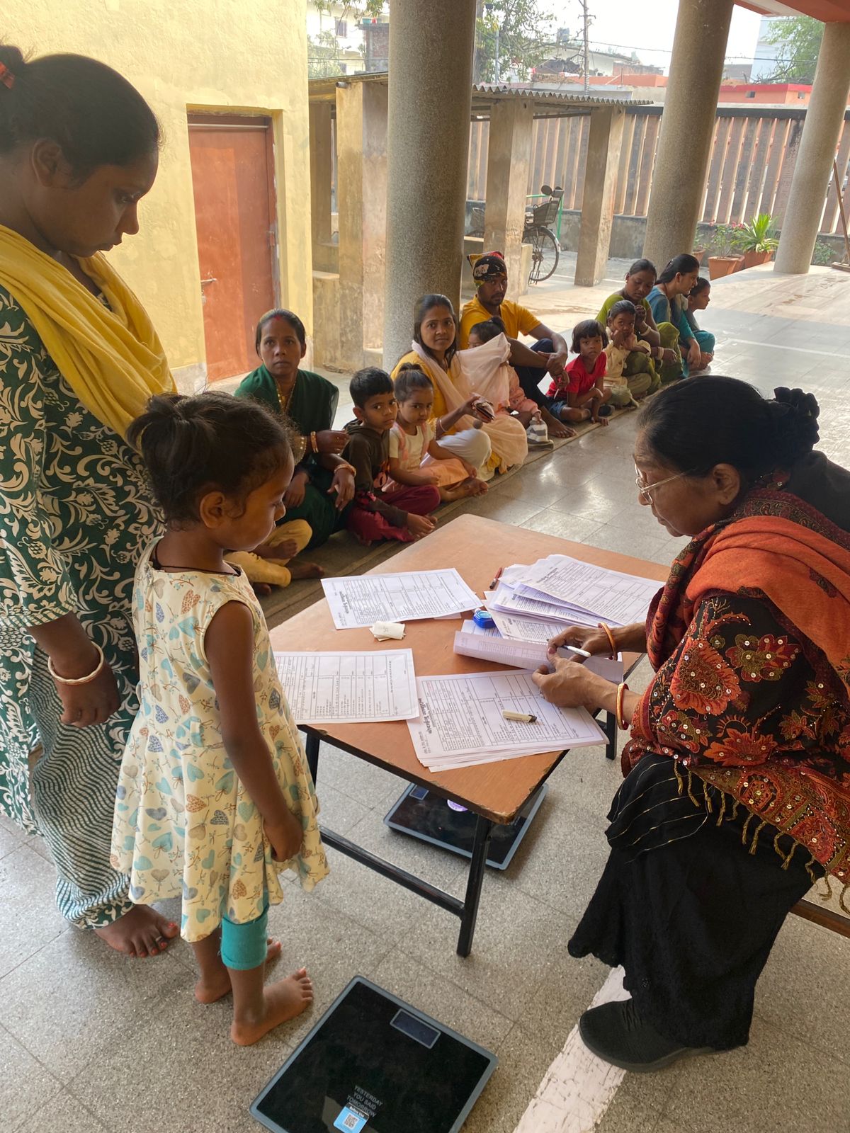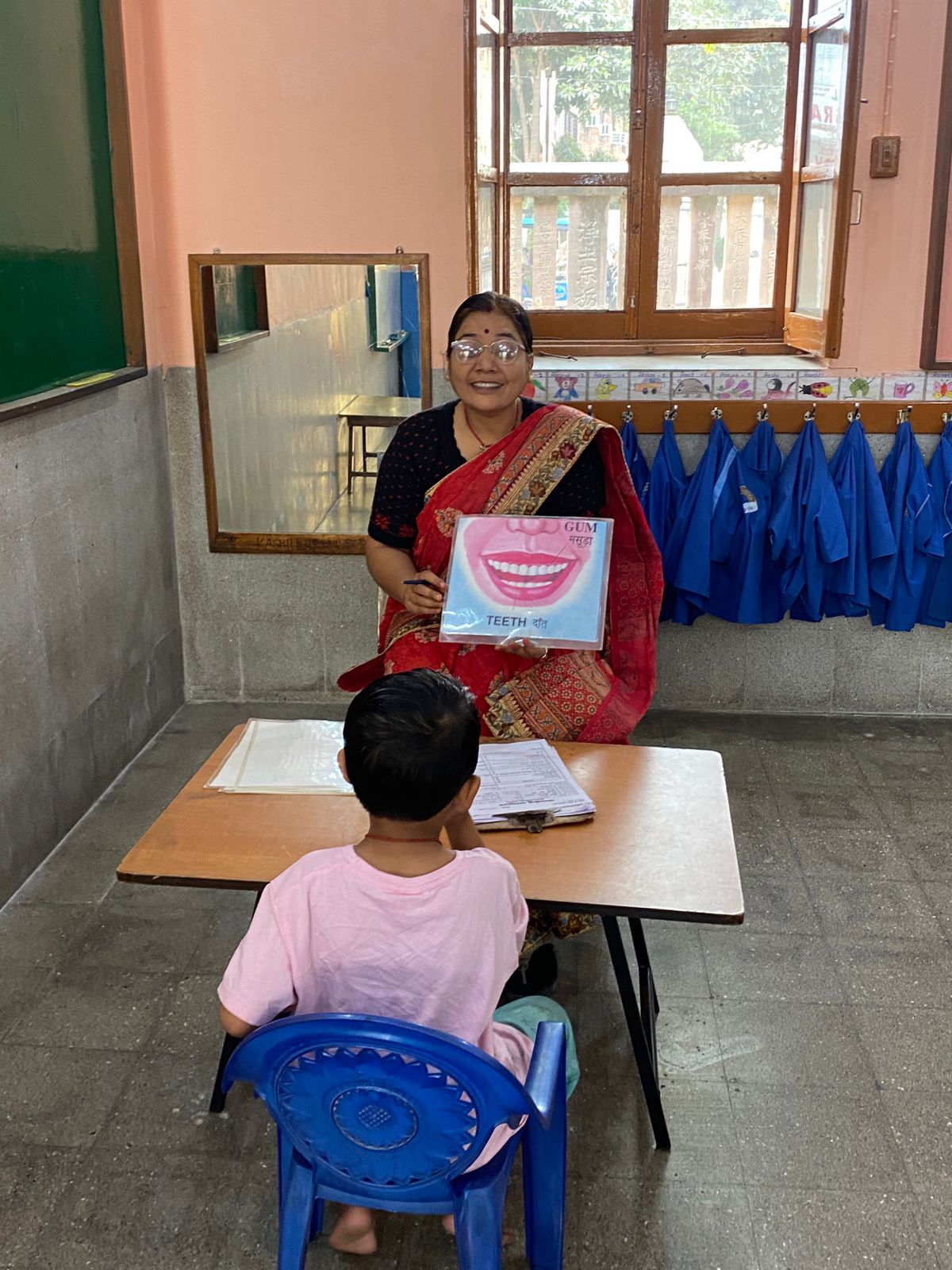 当日は、身長・体重測定とテストを実施。テストでは、両親の名前・住所、身体の5つの部位、英語・ヒンディー語のアルファベットが読めるかなど、トタ組での学習習熟度をチェック。保護者に対しては、「卒園するまで子どもを菩提樹学園に通わせることができるか」を問います。