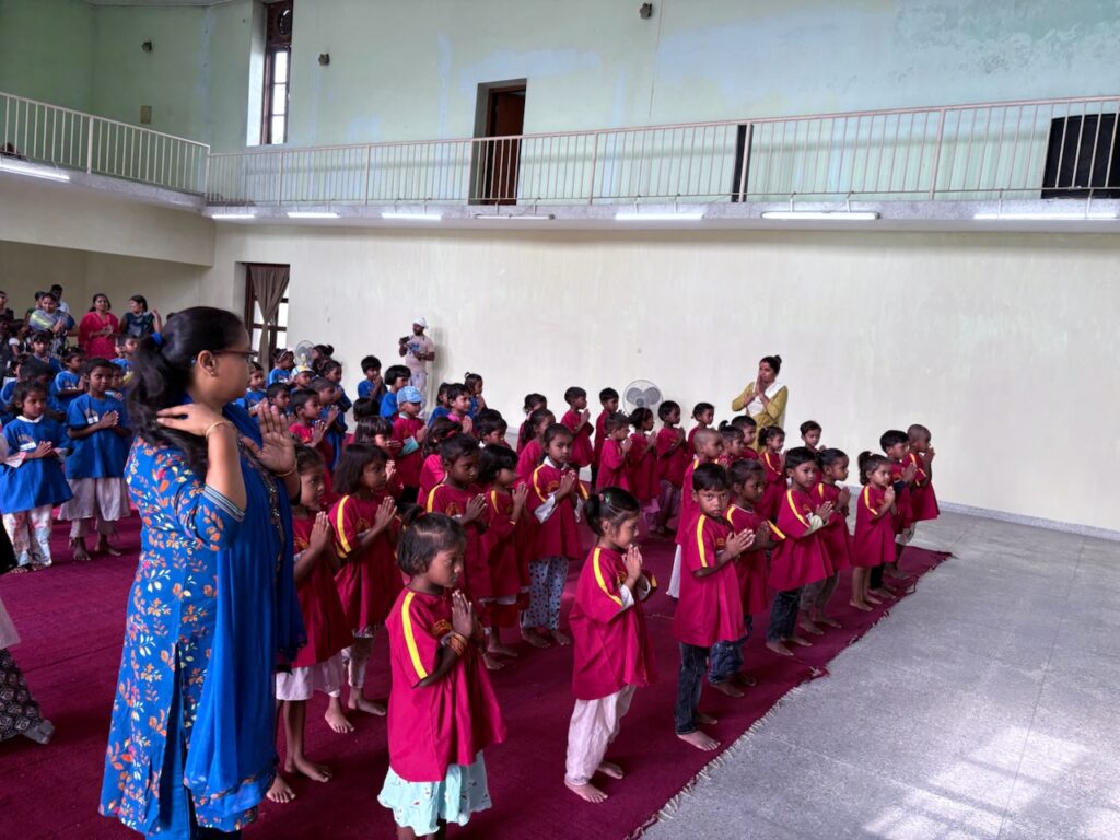 2026年4月6日菩提樹学園では、2026年4月1日、昨年度週一回の入園準備クラスに通っていた園児40名の入園式が行われました。小学校の入学テストに向けて、2年間ヒンディー語、英語や算数など菩提樹学園での本格的な学びが始まります。また、菩提樹学園では折り紙、工作や絵画を通して子どもたちの創造力の育成にも力を入れています。