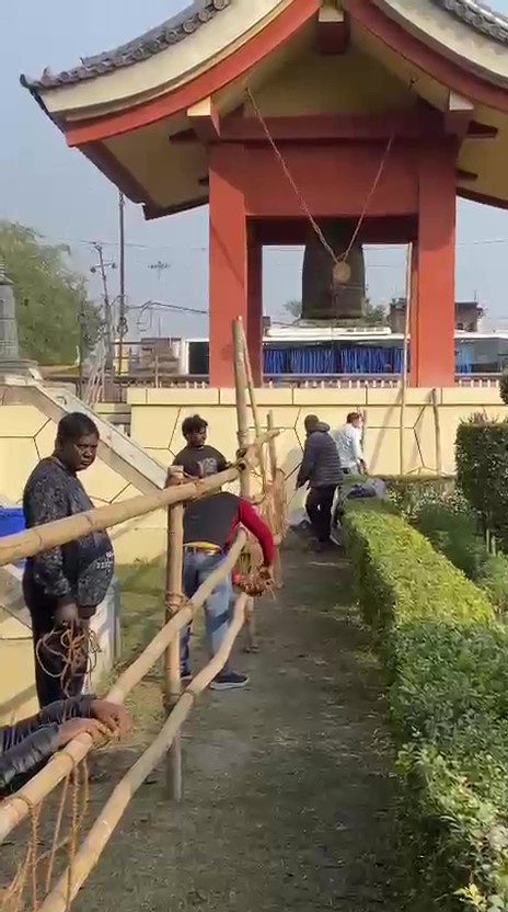 当日は夜10時に日本寺の若手のスタッフがお寺に集合し、皆で夜食に調理スタッフによる麺から手作りの年越しうどんを食べた後準備に取りかかりました。インドとはいえブッダガヤはこの時期は冷え込み、当日は気温が10度を下回っている中での準備でした。