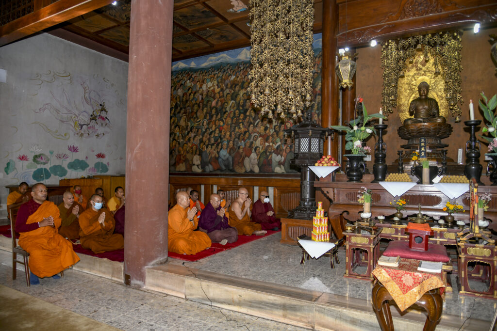 番地師に続き、大菩提寺所属の比丘衆、チベット僧によるの読経が本堂に響きわたり、お釈迦様への讃仰、世界平和が祈願されました。